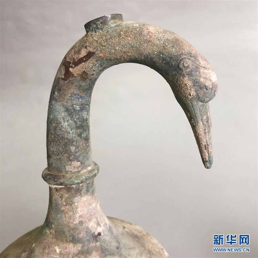 河南出土鵝首曲頸青銅壺 內(nèi)有逾3000ml不明液體