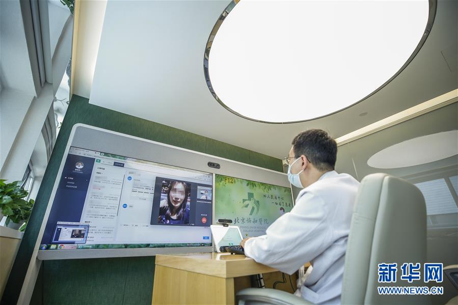 5月25日,北京協(xié)和醫(yī)院內(nèi)分泌科醫(yī)生張化冰在遠程醫(yī)學中心出診。新華社記者張玉薇攝