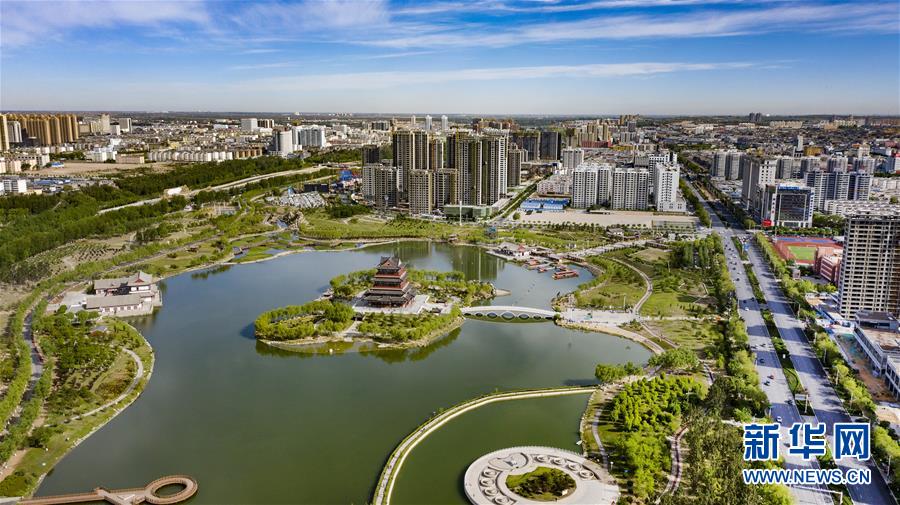 5月24日拍攝的榆林市河濱公園(無(wú)人機(jī)照片)。新華社記者陶明攝