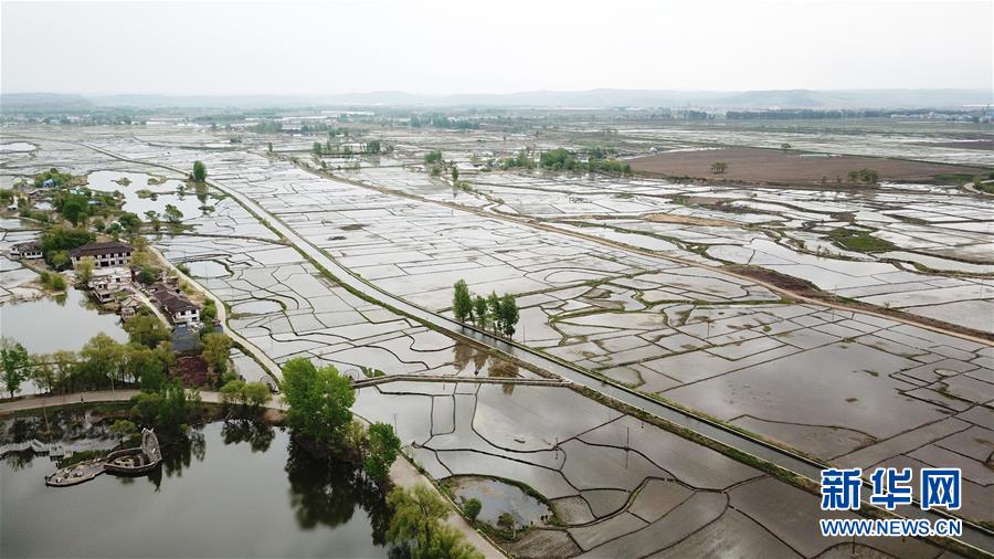 這是5月22日拍攝的寧安市渤海鎮(zhèn)插完秧的稻田(無(wú)人機(jī)照片)。新華社記者王建威攝