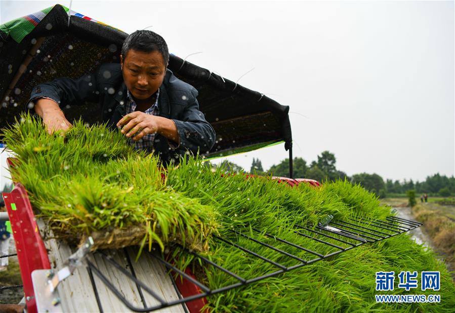 5月26日,都江堰市聚源鎮(zhèn)笆橋社區(qū)的農(nóng)技人員在整理水稻秧苗。初夏時(shí)節(jié),四川省都江堰市聚源鎮(zhèn)笆橋社區(qū)農(nóng)民搶抓農(nóng)時(shí)插秧,田間地頭一派繁忙的景象。新華社記者王曦?cái)z