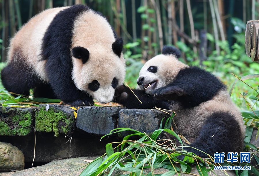 5月27日,大熊貓婷仔和隆仔在享受竹子大餐。正在享受竹子大餐的廣州長(zhǎng)隆野生動(dòng)物世界大熊貓婷仔被大熊貓隆仔搶食,兩只大熊貓上演一場(chǎng)爭(zhēng)食戲碼。新華社記者劉大偉攝