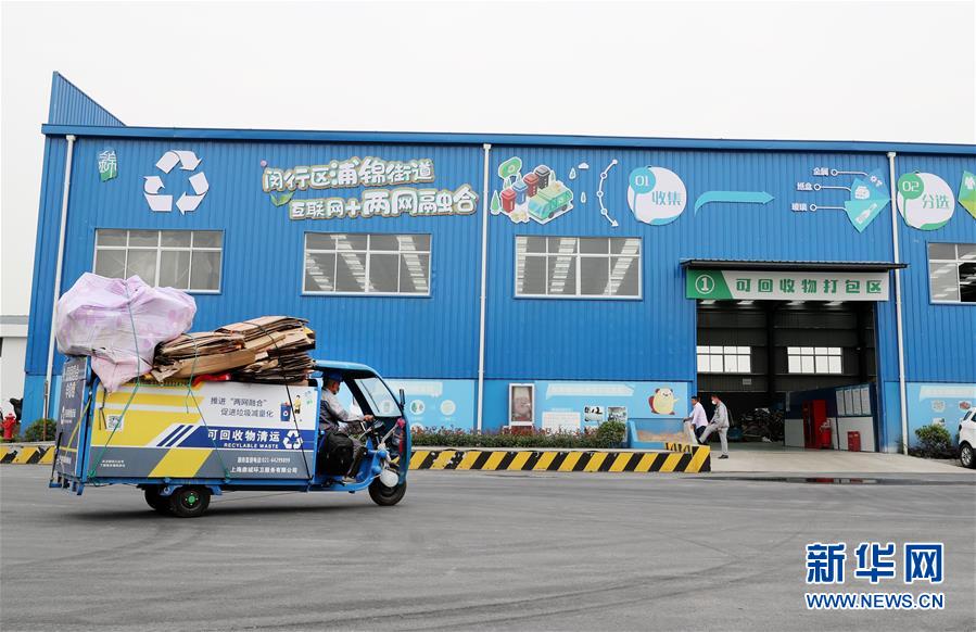 5月27日,一輛可回收物清運(yùn)車駛?cè)肫皱\街道兩網(wǎng)融合中轉(zhuǎn)服務(wù)站。