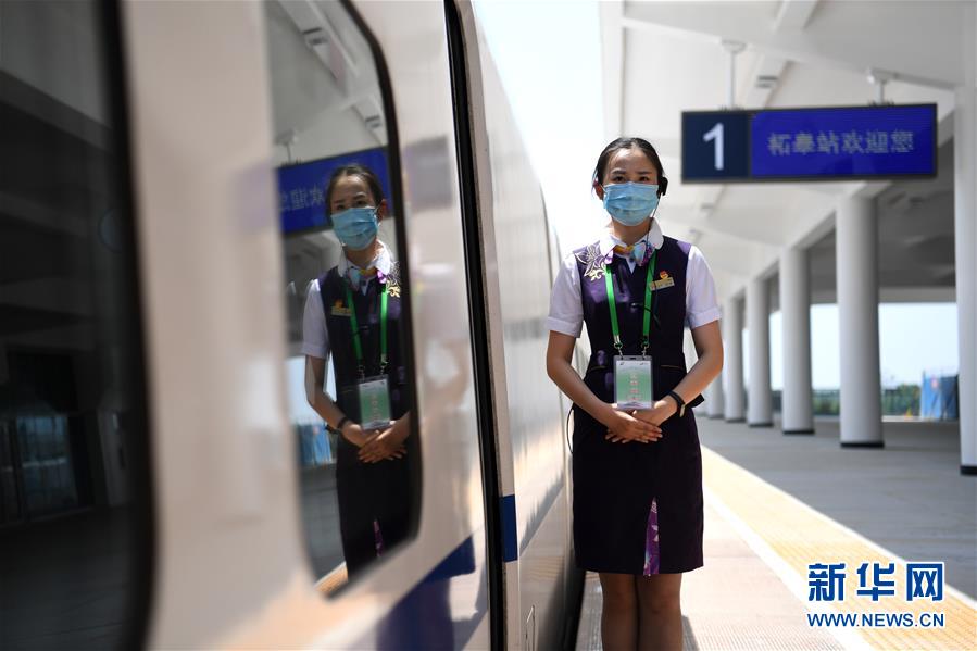 5月27日,試運行檢查確認列車乘務人員在商合杭高鐵柘皋站。新華社記者劉軍喜攝