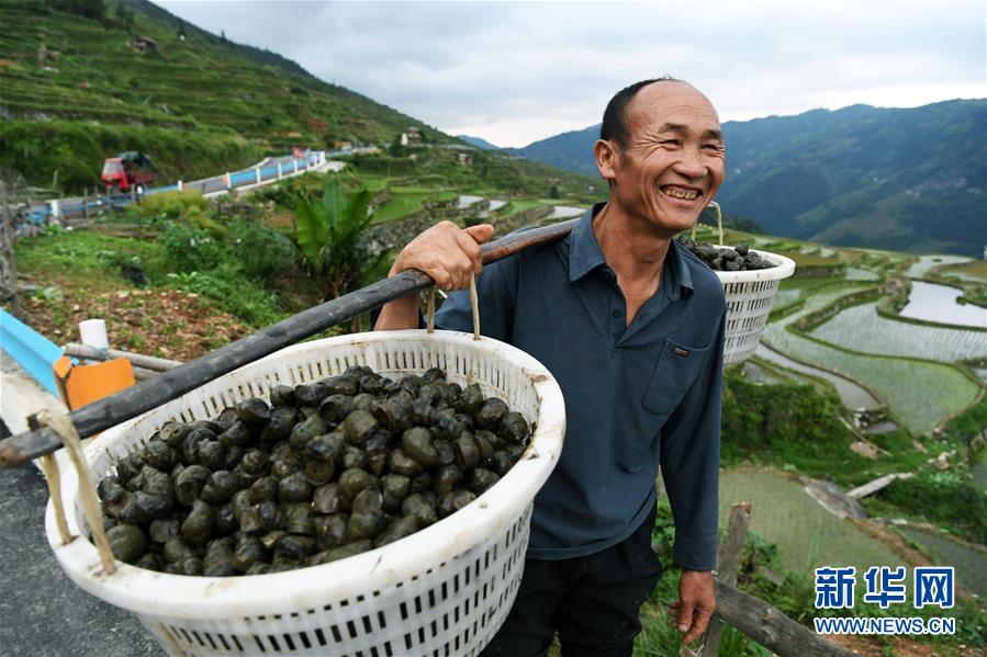 在田螺養(yǎng)殖過程中,采取“公司+合作社+農(nóng)戶”的模式,政府統(tǒng)一向龍頭公司采購種螺交給合作社,合作社根據(jù)貧困戶水田規(guī)模和意愿發(fā)放種螺,同時公司技術人員入村開展養(yǎng)殖技術培訓,田螺收獲時再由合作社對接種螺公司統(tǒng)一上門按保底價回收,解除了貧困戶養(yǎng)殖和銷售的后顧之憂,進一步拓寬山區(qū)群眾脫貧增收渠道。新華社記者楊文斌攝