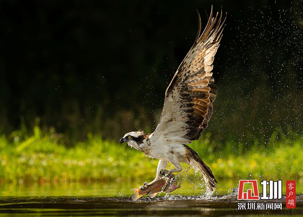 2020年5月28日報道(具體拍攝時間不詳),54歲的Gladys Klip來自荷蘭,是一名銀行助理,他在蘇格蘭高地拍攝到魚鷹捕魚的精彩照片。畫面中,魚鷹快速俯沖而下,掠過水面,鷹爪隨即從水中成功抓起一條魚兒,濺起水花,整個過程精彩詮釋快準狠。Gladys Klip稱他在早晨5點的時候已經在等候拍攝。