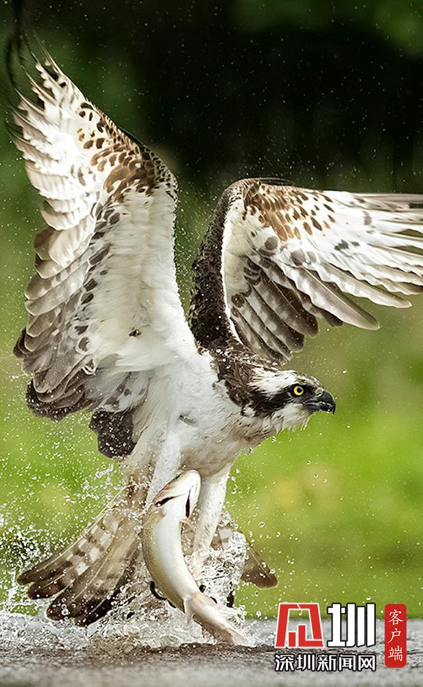 魚鷹俯沖入水捕魚 伺機(jī)而動“快準(zhǔn)狠”