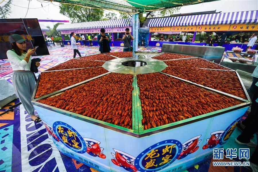 5月30日,游客在龍蝦狂歡節(jié)現(xiàn)場(chǎng)拍攝小龍蝦。新華社記者徐昱攝