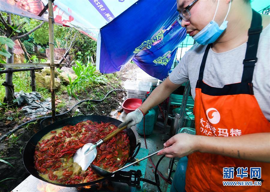 5月30日,廚師在龍蝦狂歡節(jié)現(xiàn)場(chǎng)烹制小龍蝦。新華社記者徐昱攝