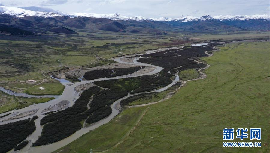 這是5月29日拍攝的四川省甘孜藏族自治州理塘縣奔戈鄉(xiāng)卡灰村一景(無人機照片)。四川省甘孜藏族自治州理塘縣地處青藏高原東部,縣城海拔約4000米,有“天空之城”的美譽。時值初夏,理塘的天空碧藍如洗,巍峨的雪山環(huán)繞四周,牦牛星星點點散落于曠野之上,構成一幅高原特有的壯美圖景。新華社記者李夢馨攝