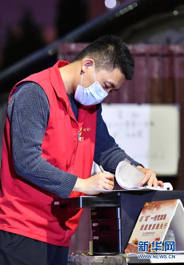楊龍明在小區(qū)內(nèi)的值班崗填寫登記信息(6月1日攝)。新華社記者李然攝。