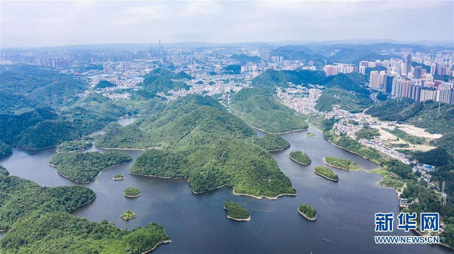6月2日拍攝的貴陽市阿哈湖國家濕地公園(無人機(jī)照片)。初夏時(shí)節(jié),貴州省貴陽市阿哈湖國家濕地公園草木蒼翠,風(fēng)景如畫,吸引人們前來休閑游玩。新華社記者陶亮攝。