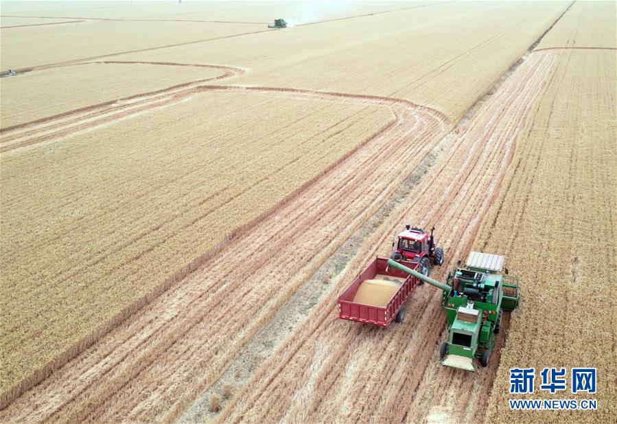 “三夏”時(shí)節(jié),中原大地一片金黃。位于河南省周口市的黃泛區(qū)農(nóng)場(chǎng)機(jī)聲隆隆,10萬(wàn)畝小麥?zhǔn)斋@正酣。