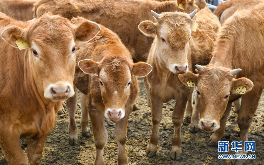 在延邊朝鮮族自治州龍井市犇福牧場(chǎng)內(nèi)拍攝的黃牛(4月16日攝)。新華社記者許暢攝。