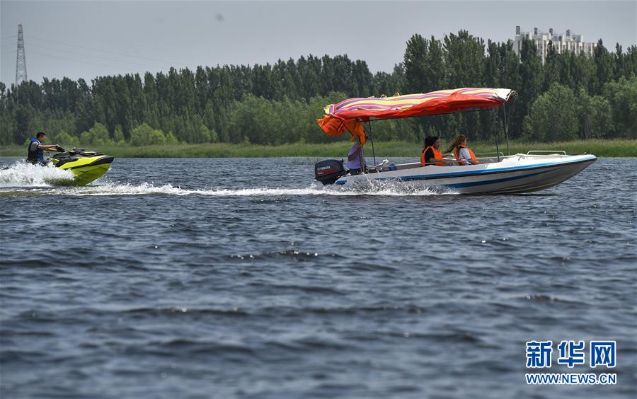 6月5日,游客在文安縣趙王新河濕地公園游覽。近年來,河北省文安縣將植樹造林與城市建設(shè)有機(jī)融合,探索“政府引導(dǎo)、企業(yè)運作、多方共贏”的市場化植樹造林新模式,大規(guī)模推進(jìn)國土綠化,打造人與自然和諧共生的優(yōu)美生態(tài)環(huán)境,構(gòu)筑京津雄綠色屏障。截至目前,該縣森林覆蓋率已經(jīng)達(dá)到33%,城區(qū)綠地面積達(dá)到36.48%。新華社記者李曉果攝。