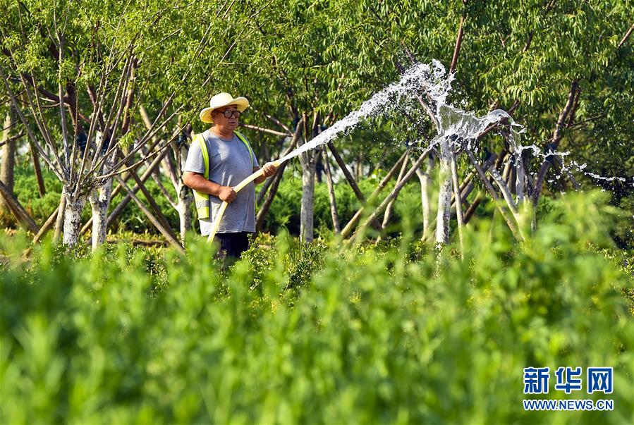 6月5日,在文安縣迎賓大道,工人給花池澆水。近年來,河北省文安縣將植樹造林與城市建設(shè)有機(jī)融合,探索“政府引導(dǎo)、企業(yè)運作、多方共贏”的市場化植樹造林新模式,大規(guī)模推進(jìn)國土綠化,打造人與自然和諧共生的優(yōu)美生態(tài)環(huán)境,構(gòu)筑京津雄綠色屏障。截至目前,該縣森林覆蓋率已經(jīng)達(dá)到33%,城區(qū)綠地面積達(dá)到36.48%。新華社記者李曉果攝。