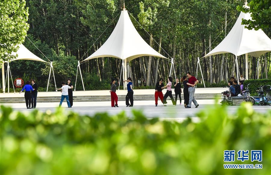 6月5日,市民在文安縣森林公園內(nèi)健身。近年來,河北省文安縣將植樹造林與城市建設(shè)有機(jī)融合,探索“政府引導(dǎo)、企業(yè)運(yùn)作、多方共贏”的市場(chǎng)化植樹造林新模式,大規(guī)模推進(jìn)國(guó)土綠化,打造人與自然和諧共生的優(yōu)美生態(tài)環(huán)境,構(gòu)筑京津雄綠色屏障。截至目前,該縣森林覆蓋率已經(jīng)達(dá)到33%,城區(qū)綠地面積達(dá)到36.48%。新華社記者李曉果攝。