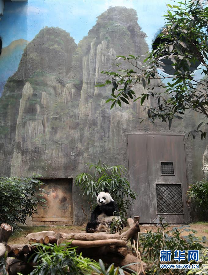 大熊貓“安安”來到香港海洋公園展區(qū)(5月11日攝)。新華社記者吳曉初攝