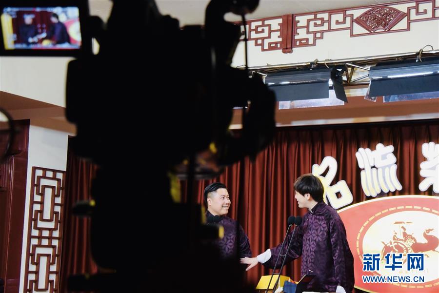6月6日晚,天津名流茶館的相聲演員在付費直播《名流名家“逗你玩”》演出中說相聲。隨著疫情防控形勢逐漸向好,天津的一些茶館紛紛轉(zhuǎn)戰(zhàn)“云端”說相聲,推出付費直播演出,并邀請一些幸運觀眾到現(xiàn)場觀看,在傳播津味相聲、培養(yǎng)年輕觀眾的同時,也為即將到來的線下演出“預(yù)熱”。新華社記者周潤健攝