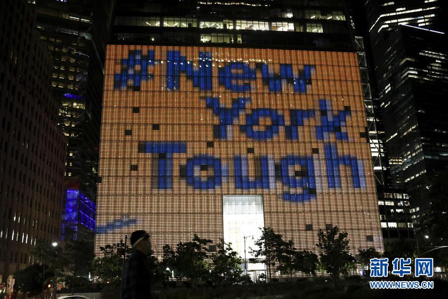 紐約多處建筑點(diǎn)燈致敬民眾團(tuán)結(jié)抗疫