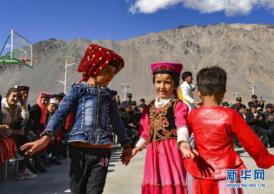 達布達爾鄉(xiāng)熱斯喀木村的小朋友在演出現場隨著音樂跳舞(6月6日攝)。新華社記者胡虎虎攝