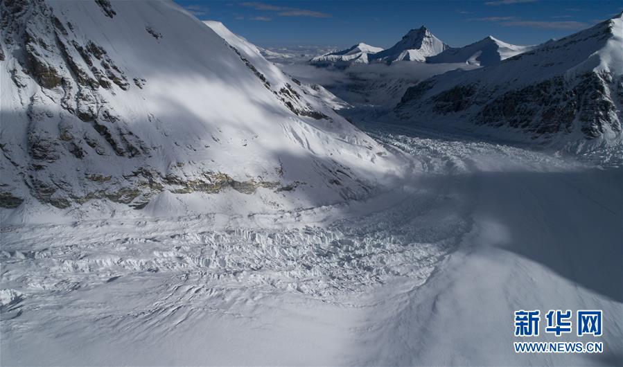 這是珠峰腳下的絨布冰川(無人機照片,5月22日攝)。從空中俯瞰珠穆朗瑪峰北坡,生機勃勃的高原濕地、蜿蜒曲折的盤山公路、壯麗秀美的絨布冰川,還有安靜的村莊和熱鬧的登山營地,共同構成一幅壯美畫卷。新華社記者晉美多吉攝