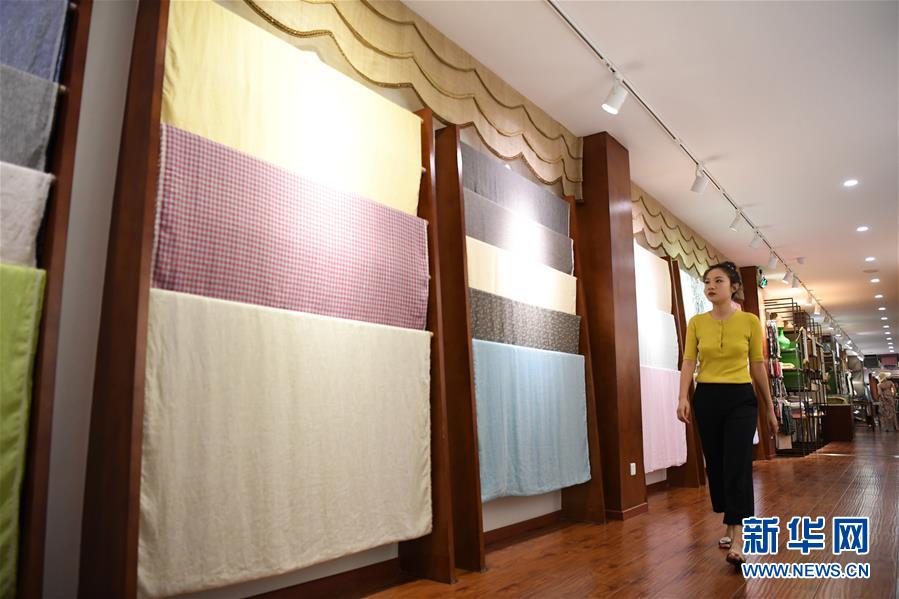 6月12日,天運夏布會館負責人唐藝在檢查展廳內(nèi)展示的夏布樣品。新華社記者 唐奕 攝