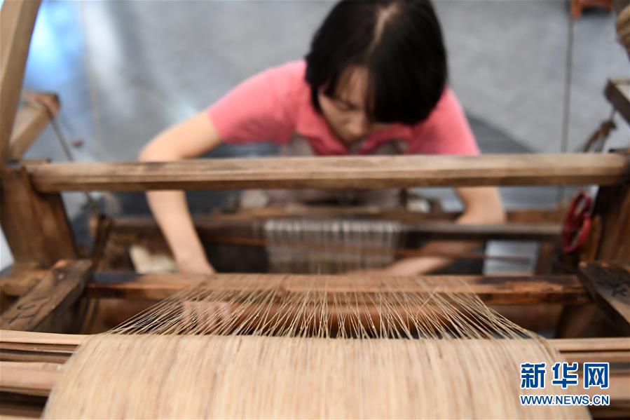 6月12日,在重慶榮昌的天運夏布會館,非遺傳承人馬琳沁在用織布機織造榮昌夏布。新華社記者 唐奕 攝