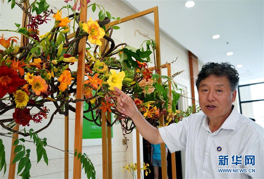 6月13日,上海應(yīng)用技術(shù)大學(xué)生態(tài)技術(shù)與工程學(xué)院的張志國教授在開幕式現(xiàn)場介紹不同品種的萱草花。當(dāng)日,“2020中國(上海)萱草文化節(jié)”在上海應(yīng)用技術(shù)大學(xué)開幕,校園里數(shù)百個品種的萱草花競相綻放,萱草科研推廣、萱草文化交流等多項活動同時舉行。新華社記者 劉穎 攝