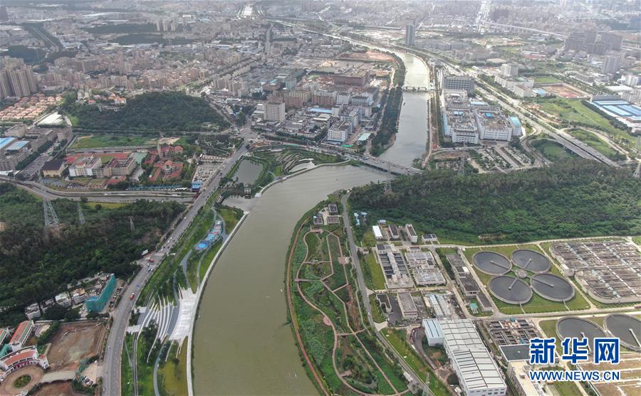 這是6月15日拍攝的茅洲河景色(無人機(jī)照片)。