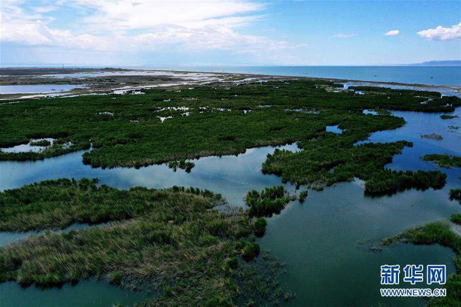 6月19日拍攝的新疆烏倫古湖國家濕地公園(無人機照片)。烏倫古湖國家濕地公園位于新疆阿勒泰地區(qū)福海縣城以西,由烏倫古湖和吉力湖兩部分組成。烏倫古湖濕地公園是遷徙候鳥飛越天山和阿爾泰山的“能量補充站”,良好的濕地生態(tài)吸引著大量遷徙鳥類在此集結成群,繁殖棲息,成為一道靚麗的風景線。新華社記者 沙達提 攝