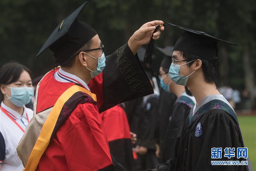 6月20日,導師在畢業(yè)典禮上為畢業(yè)生撥穗。新華社記者 肖藝九 攝