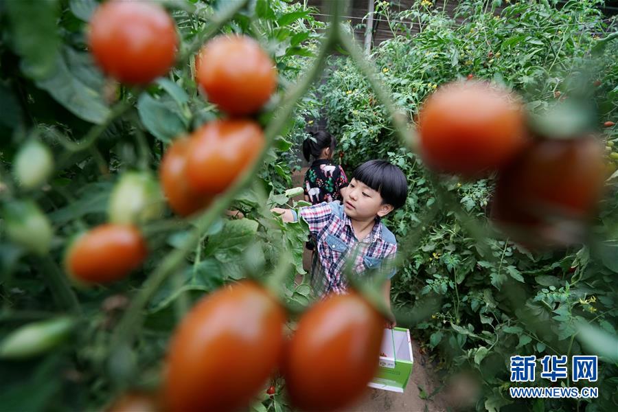 6月21日,小朋友在灤州市雷莊鎮(zhèn)吉祥現(xiàn)代農(nóng)業(yè)園區(qū)大棚內(nèi)采摘櫻桃西紅柿。近年來(lái),河北省灤州市積極調(diào)整農(nóng)業(yè)產(chǎn)業(yè)結(jié)構(gòu),鼓勵(lì)當(dāng)?shù)睾献魃绾娃r(nóng)戶發(fā)展果蔬種植,豐富當(dāng)?shù)剞r(nóng)產(chǎn)品種類,越來(lái)越多的農(nóng)民依靠“果園子”“菜籃子”鼓起了“錢袋子”。新華社記者牟宇攝