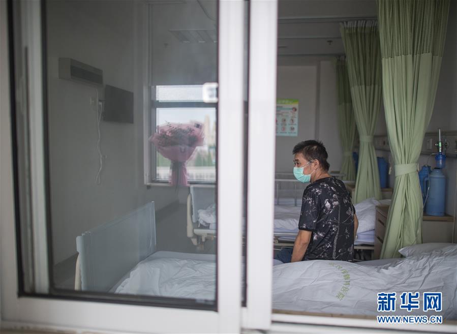 6月17日,胡定江在病房等待出院,窗臺(tái)的鮮花是他準(zhǔn)備在出院時(shí)送給醫(yī)護(hù)人員的。用過(guò)ECMO(人工膜肺)等設(shè)備,經(jīng)過(guò)多省市專家的聯(lián)合救治,在院100多天,先后經(jīng)歷了ICU、過(guò)渡病房、隔離病房、普通病房的40歲新冠肺炎康復(fù)患者胡定江,目前康復(fù)良好,經(jīng)專家研判,于6月17日出院。新華社記者肖藝九攝