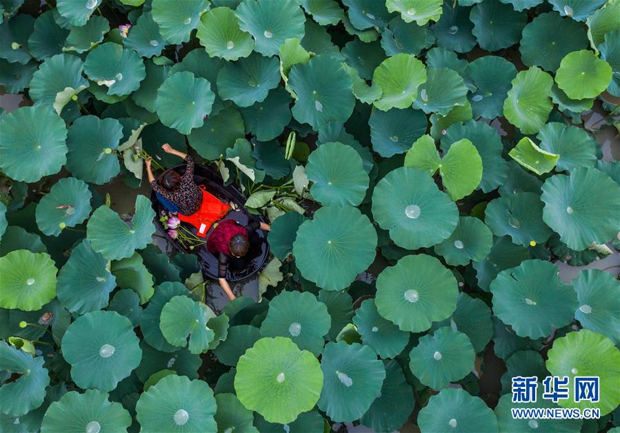 6月23日,東林鎮(zhèn)村民劃著菱桶采收荷花和蓮蓬(無人機(jī)照片)。當(dāng)日,浙江省湖州市東林鎮(zhèn)在泉心村荷花池舉辦“慶端午劃菱桶”趣味活動(dòng)。村民們劃著菱桶在水面上你追我趕,同時(shí)采收荷花和蓮蓬,呈現(xiàn)出水鄉(xiāng)特有的端午節(jié)日氛圍。在河網(wǎng)密布的東林鎮(zhèn),菱桶是水鄉(xiāng)家家戶戶都有的一種傳統(tǒng)水上勞動(dòng)工具,村民在捕魚、采菱、采荷時(shí)都要用到。新華社記者徐昱攝
