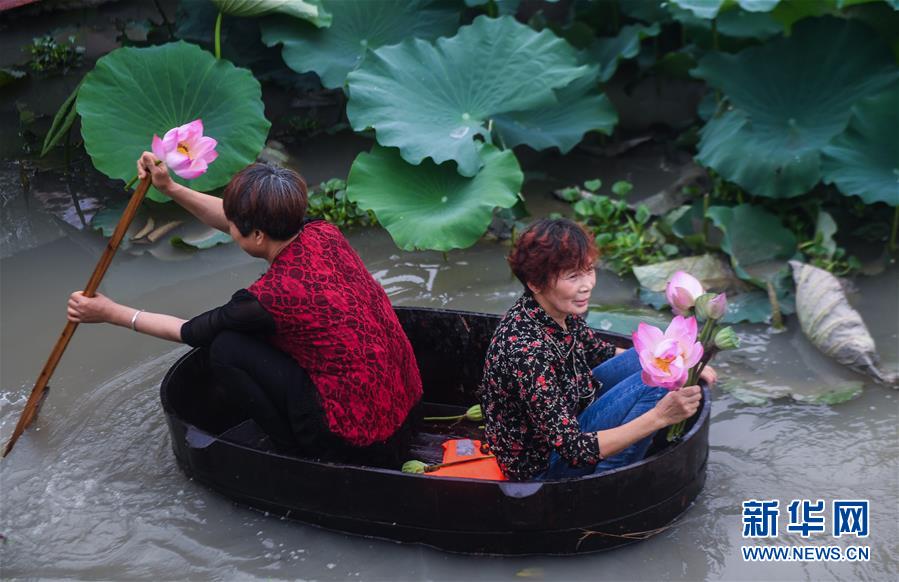 6月23日,東林鎮(zhèn)村民劃著菱桶采收荷花和蓮蓬。當(dāng)日,浙江省湖州市東林鎮(zhèn)在泉心村荷花池舉辦“慶端午劃菱桶”趣味活動(dòng)。村民們劃著菱桶在水面上你追我趕,同時(shí)采收荷花和蓮蓬,呈現(xiàn)出水鄉(xiāng)特有的端午節(jié)日氛圍。在河網(wǎng)密布的東林鎮(zhèn),菱桶是水鄉(xiāng)家家戶戶都有的一種傳統(tǒng)水上勞動(dòng)工具,村民在捕魚、采菱、采荷時(shí)都要用到。新華社記者徐昱攝