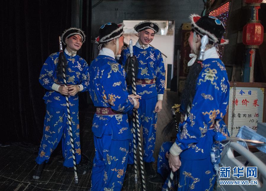 6月26日,在武漢市人民劇院,演員們在登臺前準(zhǔn)備。新華社記者 肖藝九 攝