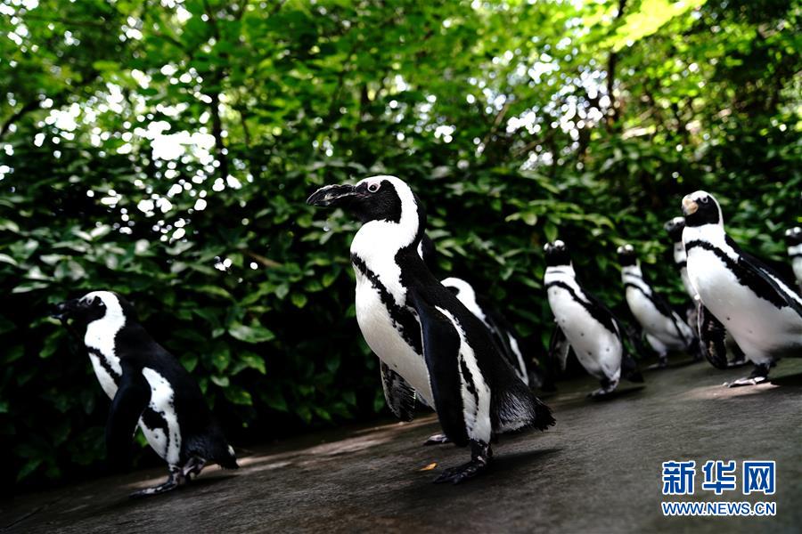 6月26日,上海動物園的企鵝在園內(nèi)漫步。新華社記者 張建松 攝