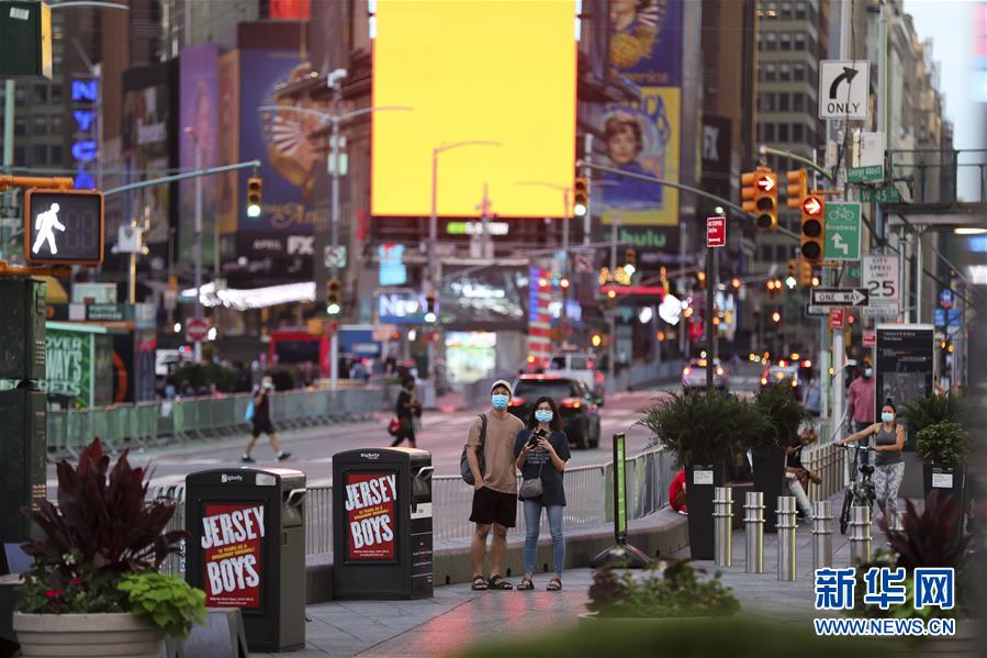 6月27日,人們在美國紐約時報廣場觀光。美國約翰斯·霍普金斯大學(xué)27日發(fā)布的新冠疫情最新統(tǒng)計(jì)數(shù)據(jù)顯示,截至美國東部時間27日16時35分(北京時間28日4時35分),美國累計(jì)新冠確診病例2500419例,累計(jì)死亡病例125434例。新華社記者王迎攝
