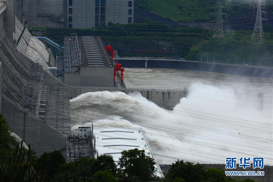 6月29日,三峽樞紐開啟泄洪孔泄洪。受長江中上游強降雨影響,進入三峽水庫的水量持續(xù)增多。為騰出一定庫容迎接近期可能到來的洪水,三峽樞紐于6月29日上午開啟兩個泄洪孔,加大下泄流量。這是三峽樞紐今年首次泄洪。28日14時,三峽水庫入庫流量達4萬立方米/秒,是27日14時的兩倍。為應(yīng)對此輪來水,長江防總要求將三峽水庫下泄流量上調(diào)至日均3.5萬立方米/秒。新華社發(fā)(黃善軍攝)