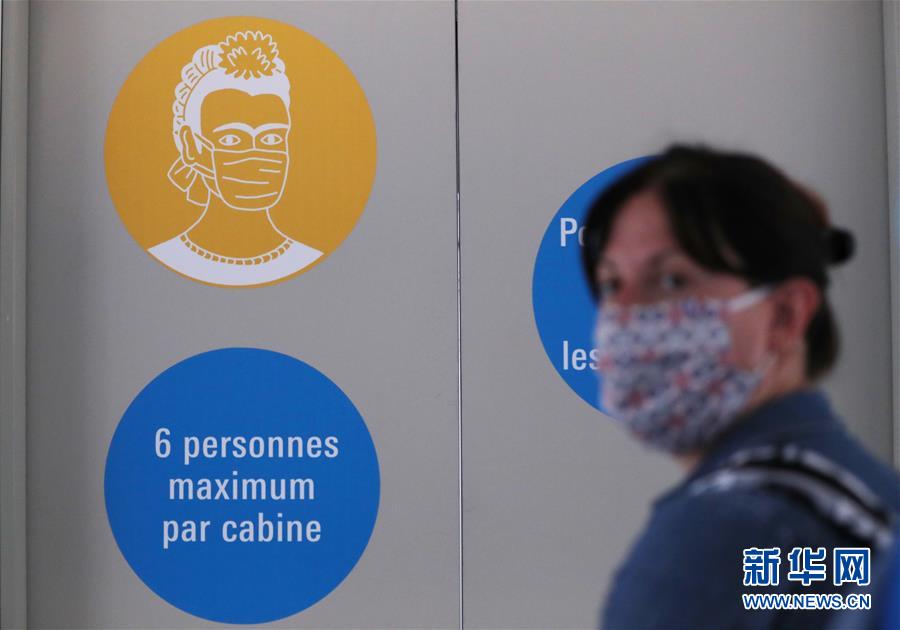 7月1日,法國(guó)巴黎蓬皮杜藝術(shù)中心的電梯上貼著“請(qǐng)佩戴口罩”和“最多6人乘梯”的標(biāo)識(shí)。因新冠疫情關(guān)閉的法國(guó)巴黎蓬皮杜藝術(shù)中心于7月1日重新開(kāi)門(mén)迎客。目前,中心只開(kāi)放6層的臨時(shí)展區(qū)和4、5層的現(xiàn)代藝術(shù)常設(shè)展區(qū)。參觀(guān)者需提前網(wǎng)上預(yù)約參觀(guān)時(shí)段,11歲以上參觀(guān)者須佩戴口罩,參觀(guān)過(guò)程中保持安全距離。新華社記者高靜攝