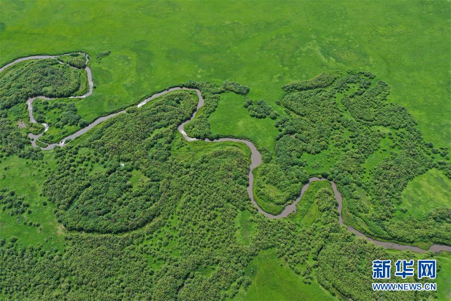 烏蘭毛都草原景色(7月2日無人機(jī)照片)。盛夏時節(jié),內(nèi)蒙古興安盟科爾沁右翼前旗的烏蘭毛都草原綠意盎然,風(fēng)景醉人。烏蘭毛都草原地處大興安嶺南麓,屬丘陵山地草原,風(fēng)光獨特。新華社記者徐欽攝