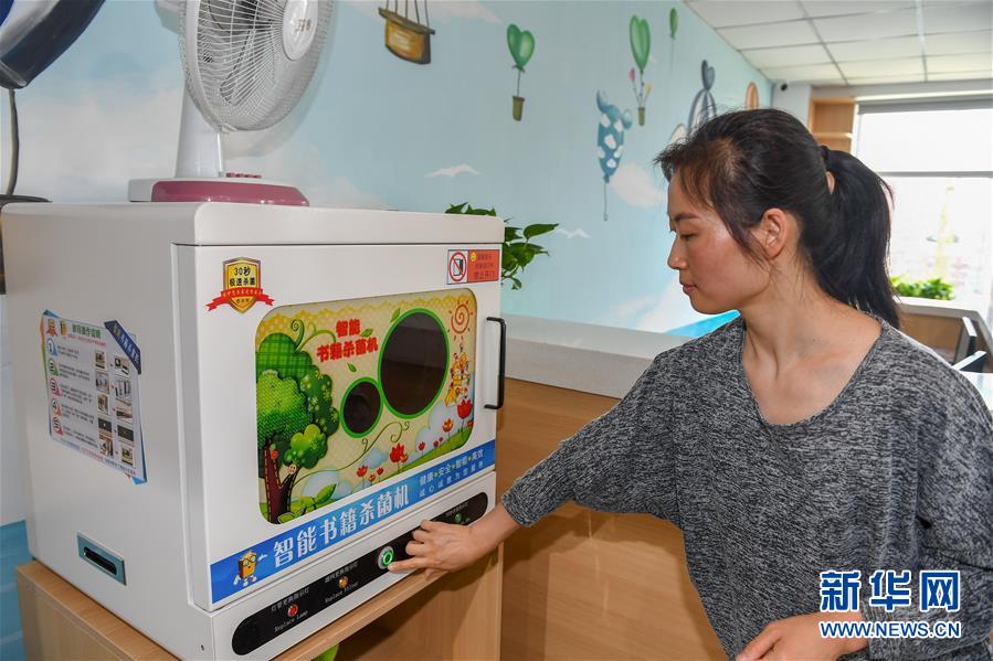 7月2日,在長春市少年兒童圖書館平陽社區(qū)繪本主題分館,管理員金敏為圖書進(jìn)行消殺。長春市少年兒童圖書館平陽社區(qū)繪本主題分館位于南關(guān)區(qū)曙光街道平陽社區(qū),目前藏書約5000冊。該館于6月30日揭牌開館,由長春市少年兒童圖書館和南關(guān)區(qū)曙光街道辦事處共同打造,是長春首個繪本主題圖書分館??蔀橹苓吘用窈蛢和峁﹫D書借閱、數(shù)字閱讀體驗、親子活動、少兒公益活動等服務(wù)。新華社記者張楠攝