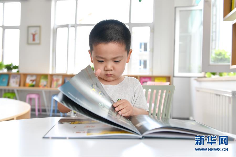 7月2日,在長春市少年兒童圖書館平陽社區(qū)繪本主題分館,小朋友閱讀繪本。長春市少年兒童圖書館平陽社區(qū)繪本主題分館位于南關區(qū)曙光街道平陽社區(qū),目前藏書約5000冊。該館于6月30日揭牌開館,由長春市少年兒童圖書館和南關區(qū)曙光街道辦事處共同打造,是長春首個繪本主題圖書分館??蔀橹苓吘用窈蛢和峁﹫D書借閱、數(shù)字閱讀體驗、親子活動、少兒公益活動等服務。新華社記者張楠攝