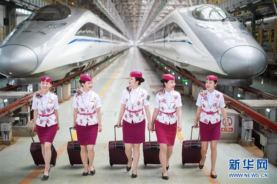 7月3日,擔(dān)任首發(fā)列車(chē)值乘工作的貴陽(yáng)客運(yùn)段乘務(wù)員在貴陽(yáng)亮相。 新華社記者 劉續(xù) 攝