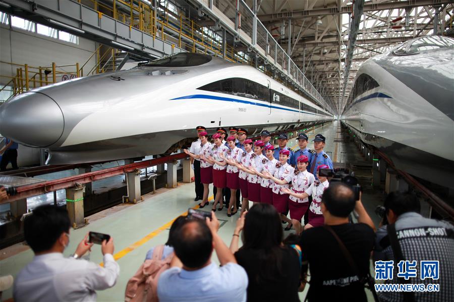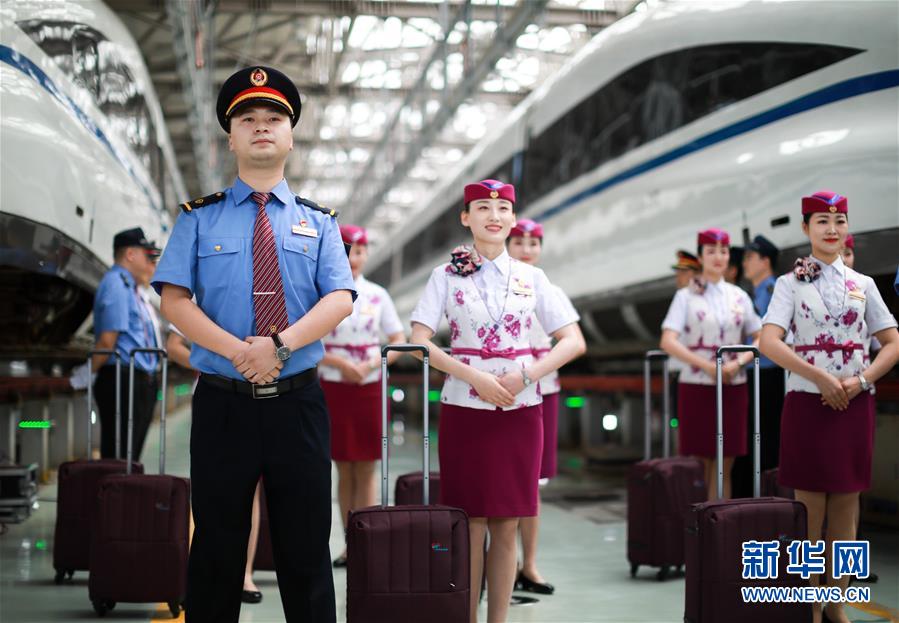 7月3日,擔(dān)任首發(fā)列車(chē)值乘工作的班組人員在貴陽(yáng)亮相。 新華社記者 劉續(xù) 攝