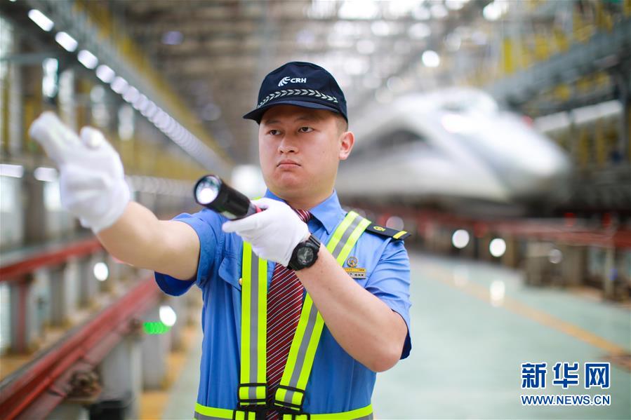 7月3日,擔(dān)任首發(fā)列車(chē)值乘工作的隨車(chē)機(jī)械師在貴陽(yáng)亮相。 新華社記者 劉續(xù) 攝