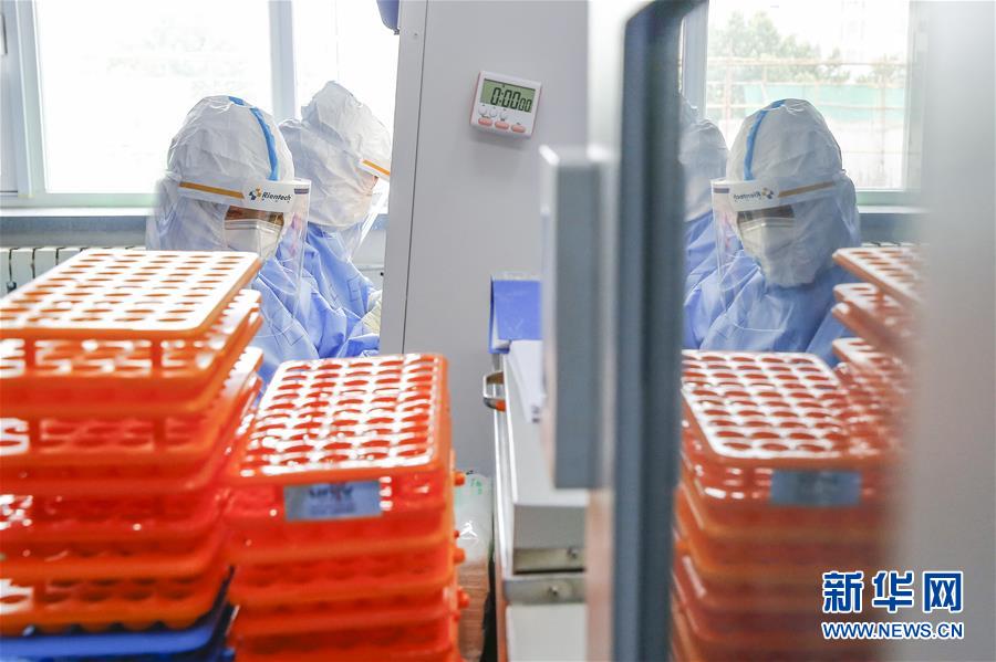 目前,北京中日友好醫(yī)院檢驗(yàn)科新冠核酸檢測(cè)實(shí)驗(yàn)室做到了“人休設(shè)備不休”,飽和狀態(tài)每天能完成約10000份樣本的檢測(cè)工作。