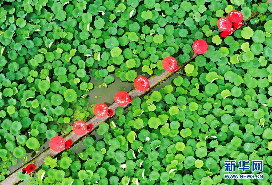 7月3日,游客在曲周縣勝豐蓮藕種植專業(yè)合作社荷塘景區(qū)游覽(無(wú)人機(jī)照片)。時(shí)值夏日,河北省曲周縣勝豐蓮藕種植專業(yè)合作社荷塘景區(qū)的荷花競(jìng)相綻放,吸引眾多游人前來(lái)觀光游覽。新華社記者 王曉 攝