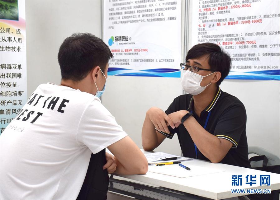 7月4日,求職者與企業(yè)人事專(zhuān)員交流。新華社記者 白佳麗 攝